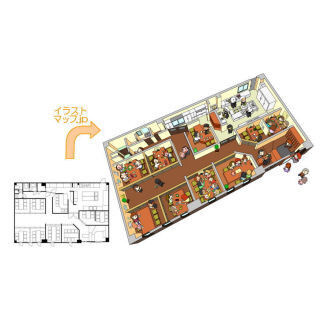 写真では出せないイラストを、屋外施設だけではなくファミリーマンションの室内やオフィス、小売店、居酒屋など飲食店からショッピングセンターまで、規模を問わずあらゆる施設向けに作ってしまおうという趣旨の、マップに特化したイラスト作成サービスだという。他にも町内、市内等のエリアマップ、未来のイメージや架空の世界も、マップであれば何でも対応可能ということだ。
