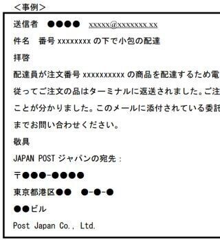リリースに掲載された事例では「最寄りのJAPAN POST 取り扱い郵便局」などと、日本郵政や日本郵便が送付するメールでは考えにくい文面も見られることから、両社からのメールを受信した場合は、本文をよく読んで対処することで、被害を未然に防げる可能性がある。