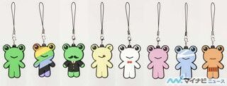 まずは、「とあるゲコ太のラバーストラップ」全8種。こちらのフォルムは、同社がイベントなどで運用している"ゲコ太のきぐるみ"をベースにしたもので、ノーマル/レインボー/紳士/テヘペロ/蝶ネクタイ/ピンク/包帯/腹巻きの8種類となっている。表面がぷっくりとした仕上げで、ゲコ太らしい可愛らしさが充分に表現されている。価格は、1BOX:6,400円(税別)/単品:800円(税別)。