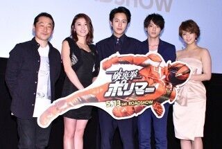 5月13日公開の映画『破裏拳ポリマー』の完成披露試写会が12日、東京・新宿バルト9で行われ、溝端淳平、山田裕貴、原幹恵、柳ゆり菜、坂本浩一監督が出席した。