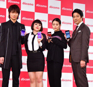 俳優の堤真一、綾野剛、女優の高畑充希、モデルの中条あやみ、お笑いタレントのブルゾンちえみが24日、都内で行われたNTTドコモ「2017夏 新サービス・新商品発表会」に出席した。