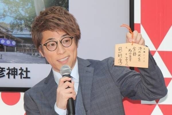 そして、「新しいチャレンジ」のご利益スポットである猿田彦神社の絵馬に願い事を書き入れることに。田村は「池の水を全部ぬけますように」と、4月から月1回レギュラーとして放送されることが決定したテレビ東京『緊急SOS!池の水ぜんぶ抜く大作戦』にからめた願い事を書き、「レギュラー化されたっていうのをさっきネットニュースで見た。なるっていうのは聞いてたんですけど、今日発表するって知らなくて…。いよいよ動き出すんだと思って」とうれしそうに話した。