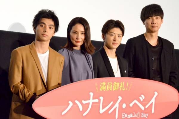 映画『ハナレイ・ベイ』(10月19日公開)の公開記念舞台挨拶が20日、都内で行われ、吉田羊、佐野玲於、村上虹郎、松永大司監督が登場した。