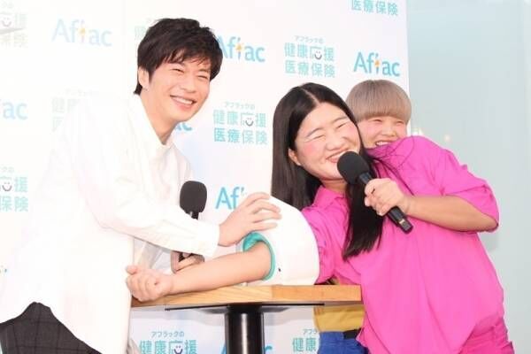 俳優の田中圭とお笑いコンビ・ガンバレルーヤのよしことまひるが22日、東京・虎ノ門ヒルズで行われた「アフラックの健康応援カフェ」オープニングイベントに登場。田中がガンバレルーヤの健康測定を行い、体重結果に「けっこう衝撃だった」と驚いた。