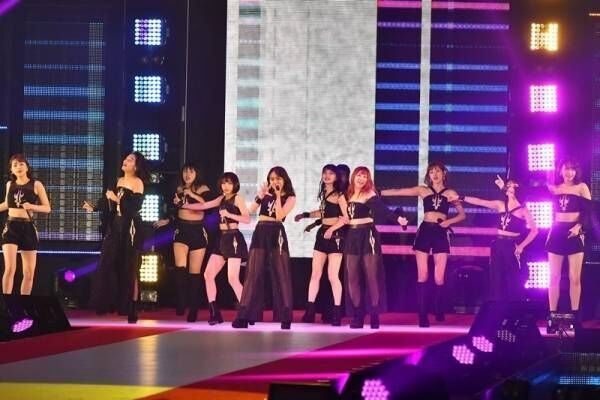 9月25日に勝田里奈が卒業し、11人の新体制となって初のパフォーマンスとなったアンジュルム。ウエストや美脚、デコルテなど、肌を大胆に露出したセクシーな衣装で、「赤いイヤホン」と「泣けないぜ…共感詐欺」を披露した。