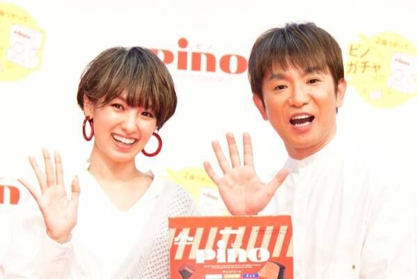 お笑いコンビ・よゐこの濱口優とタレントの南明奈が4日、都内で行われた森永乳業「ピノガチャ」発表会に出席した。
