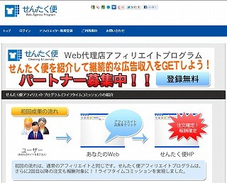 宅配クリーニング「せんたく便」の”Web代理店アフィリエイトプログラム”への申込みは、専用ページ「せんたく便 Web Agency Program」にて受け付けている。