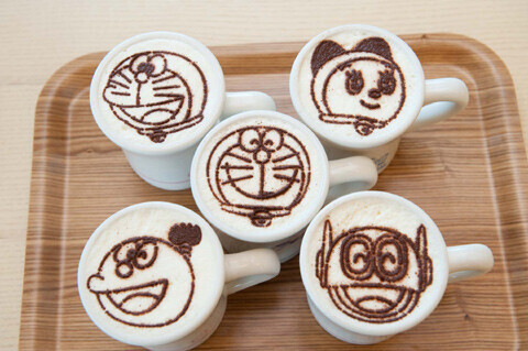 絵柄はドラえもん、ドラミちゃん、コロ助、パーマン。ノンシュガー、チョコ、バニラ、キャラメル、ヘーゼルナッツとフレーバーごとにイラストが変わってくるので、家族みんなで違う味を頼んで、キャラクターを集合させてみるのも楽しいですよ。子どもたちは「はらっぱ」で遊び、ママたちはラテアートでカフェタイムというのもいいですね。