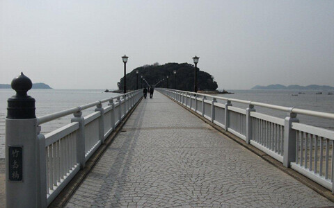 ここはJR東海道線 蒲群駅から徒歩15分とアクセスもよいところにあり、海の中にぽっかりと浮かぶ不思議な島です。大きな長い橋があり、歩いて島へ渡ることができます。