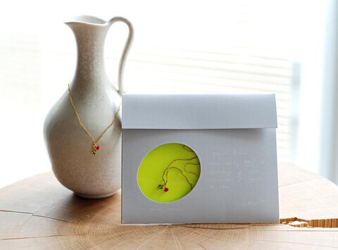 赤いビーズは「情熱」を、緑のビーズは「希望」を意味する、なんとも可憐なブレスレット。ブレスレット本体のニットデザインを横尾香央留氏が、パッケージデザインを建築家の谷尻誠さんが手掛けている。