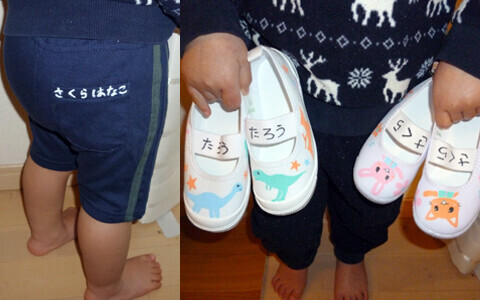 名前を書いて自分のものと示すだけでなく、左右の区別を学ぶのにも一役買うとは本当に便利。子どもには、そうやって日常生活の中で少しずつ知識を増やしてあげたいものです。