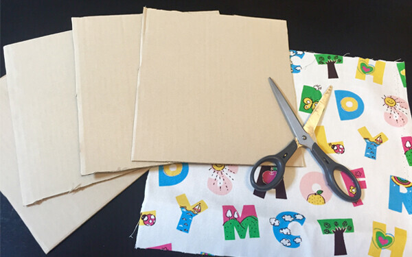 メインとなる材料はなんと…ダンボール! そのほかに用意するものはお好きな布、木工用ボンド、はさみ、以上。これなら用意できますよね。