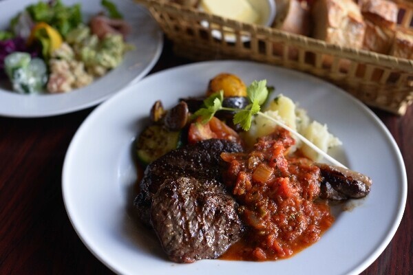 函館にフランス料理を広めた立役者であるシェフが、自家農園でとれた野菜や自分で狩った鹿肉などで本格料理をふるまってくれます。