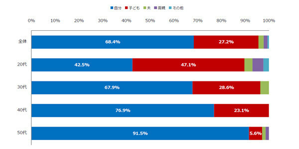 「家事支援サービスを利用するとしたら、空いた時間を誰のために使いたいですか?」というアンケートでは全体の68.4%が「自分」と答える一方、20代のママは47.1%が「子ども」と答えており、高い数字となっています。