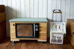 まるでおとぎ話の森へ迷い込んだような、エントランススペース。ここでも、もう一台のハイチェアを花台として使っています。
