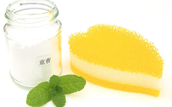 重曹を容器に直接ふりかけて、スポンジなどで拭き取る方法もあります。ただしこの方法は、重曹でこすり洗いすることによって油汚れなども落とせますが、容器を傷つけてしまう可能性も。こすりすぎには注意しましょう。