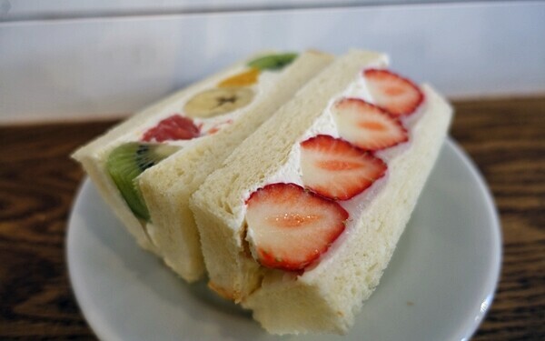 食パンは「パンとエスプレッソと」の表参道店でフルーツサンド用に焼かれたもの、フルーツは創業70周年を迎える中野区都立家政駅前にある「ふたばフルーツ」の完熟ものを使用し、一味違うこだわりがあります。