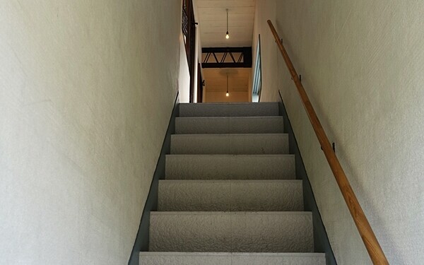 少しだけ急な階段を上がった先が、sahan。奥の古書店「ウサギノフクシュウ」ものぞきたい。