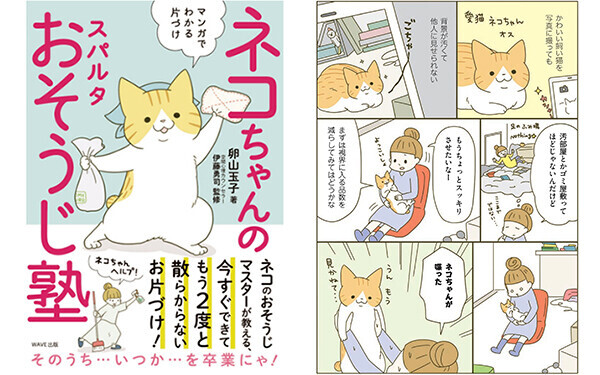 大人気の猫マンガ『うちの猫がまた変なことしてる。』の卵山玉子さん×空間心理カウンセラー・伊藤勇司さんの最強タッグによる、片づけ応援マンガ『ネコちゃんのスパルタおそうじ塾』。2度と散らからないお片づけ、お掃除のコツをネコのおそうじマスターが教えてくれるユニークな1冊です。