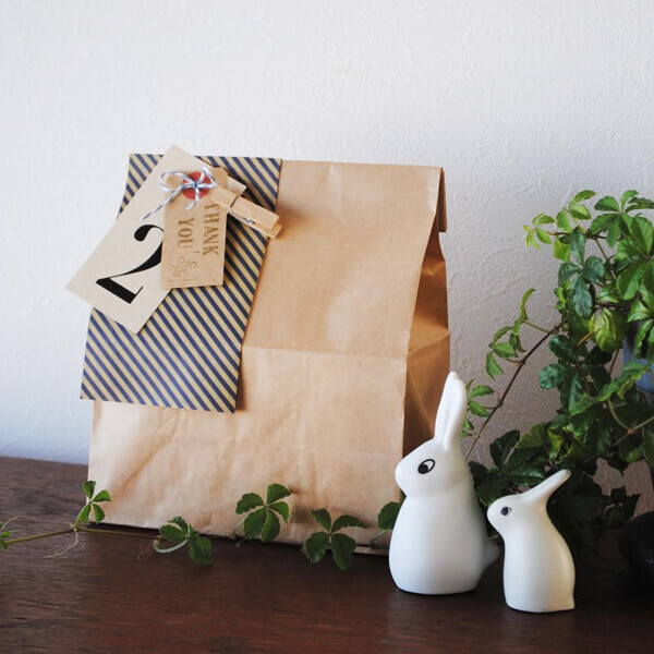 プチギフトの場合、ラッピングに凝りすぎても相手に気を遣わせてしまいそうなので、ラフな雰囲気にしてみました」