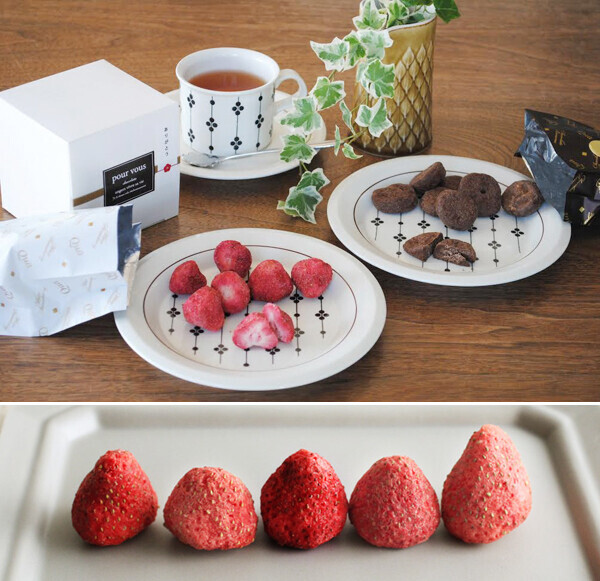 新鮮なうちにフリーズドライした果実に、独自の技術でチョコをじっくり染み込ませた新感覚のスイーツ。サクッ&クリーミーな、今までにない食感が味わえます。