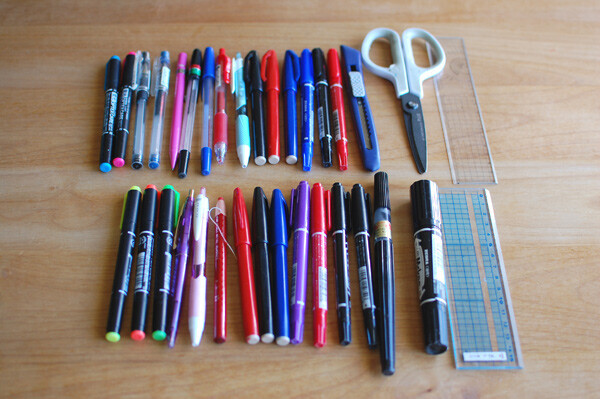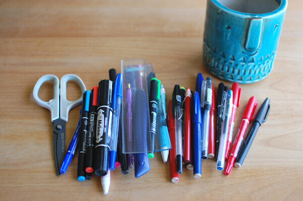 すでにインクが出なくなっているペンや、壊れて書けないものが混じっていることも。物理的に「使えない」ものを処分します。