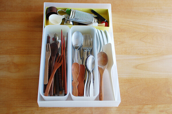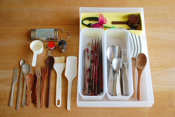 よく使う場所の筆頭、キッチンのカトラリー入れ。知らない間に不要なものが紛れ込んでいたり、同じ種類のものがいっぱいあったり。こちらもザックリで構いませんので整えましょう。