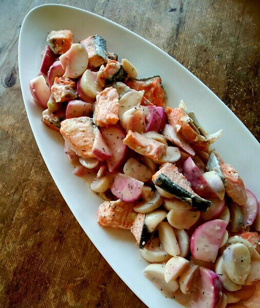 ■冷え対策に、根菜類を食べてぽかぽか 鮭とカブのクリーム煮