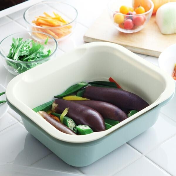 意外と役立ったのがレンチンもOKなふたです。食材を洗ってコランダーに入れて、そのままバットにセットしふたをしてレンチン。その後、ふたを裏返してコランダーの下に敷けば水切りトレーとして使えるので、洗い物が少なくて済むのも助かりました!」