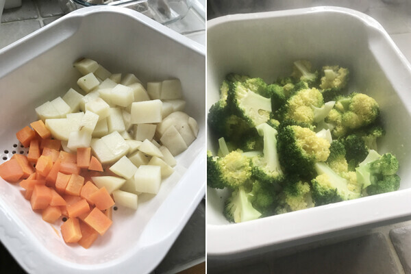 コランダーを使えば、温野菜の一品もカンタンに完成しますね。