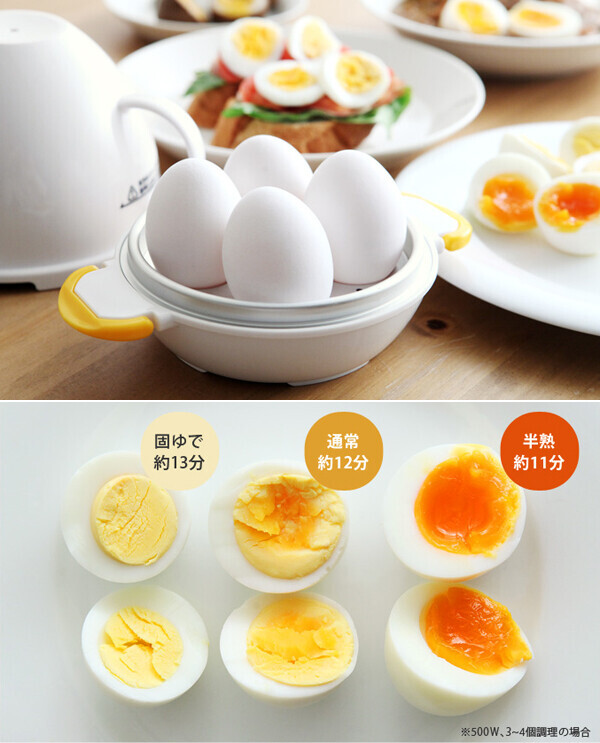 その名の通り、レンジでゆで卵が作れるクッカーです。一度に4つ調理が可能なのが、子育てファミリーにうれしいポイント。また、ゆで具合の調整も、レンジの加熱時間を調整するだけ。半熟から固ゆでまで、お好みのゆで卵が手間なく作れます。