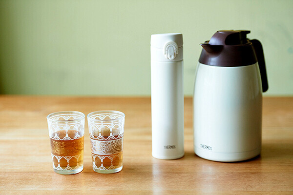 水出しした飲み物は、氷とともに(お好みで)水筒やポットに入れておくのがおすすめ。冷蔵庫を開け閉めすることなく、いつでも美味しく冷えた飲み物をいただけます。