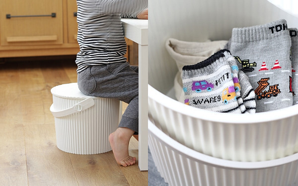 「普段はリビングの一角に置いてこまごましたものを収納しているバケツは、椅子がわりになったり、アウトドアに持ち出したりといろんなシーンで使えます。できるだけ、用途がひとつに限らないものを選ぶようにしています」(本田さん)