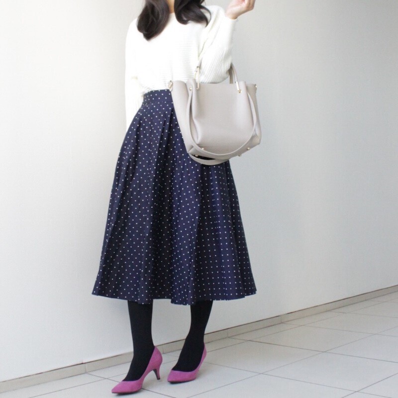 ■【ユニクロ】春らしいドット柄スカートで軽やかなシルエットに