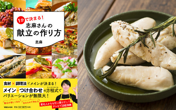 予約の取れない伝説の家政婦・志麻さんの最新レシピ本『1分で決まる!志麻さんの献立の作り方』では、1分もかからずに15品ほどの献立を考え、調理してしまう志麻さんの献立力に着目。
