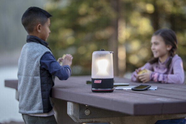 キャンプに欠かせない灯りは、小さな子どもがいるならLEDランタンが安心。コールマンの「360°サウンド&ライト」は、LEDランタンとスピーカーの機能がひとつになった1台2役のスグレモノです。