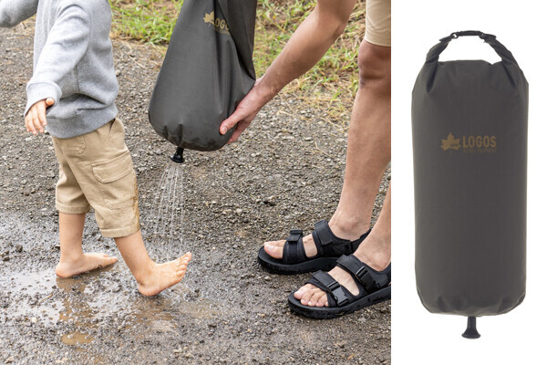 アウトドアでは水場が近くにないことも多いもの。海遊びや川遊びのあと、子どものシャワーや手足の砂落としにあると便利なのが、LOGOSの「エアライトシャワー」。持ち運びができる簡易シャワーです。