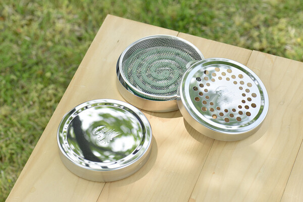 虫よけグッズの定番といえば、蚊とり線香。なんとなく野暮ったいイメージがあるかもしれませんが、TSBBQ(ティーエスビービーキュー)の携帯蚊とり器「ステンレス蚊とりホルダー」を使えば、一気におしゃれな雰囲気に。平置きだけでなく、手持ちのカラビナをフックに引っ掛ければ 腰からぶら下げて携帯もできます。グランピングにもおすすめですよ。