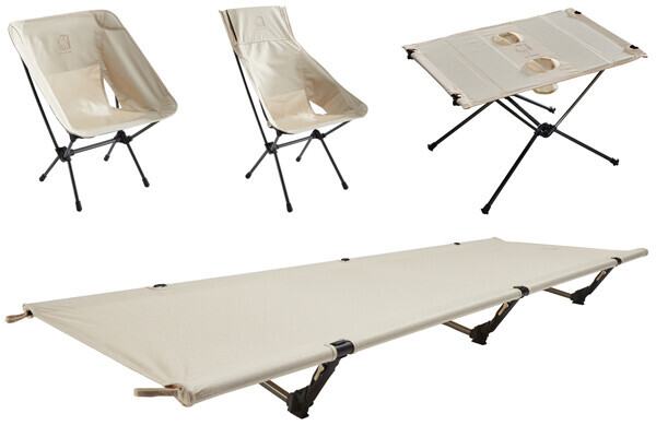 家族分だけほしいチェアは意外にかさばるグッズですが、「Nordisk ×Helinox Series(ノルディスク×ヘリノックスシリーズ)」のチェアなら、コンパクトかつおしゃれ! 同シリーズは「Helinox(ヘリノックス)」と「Nordisk(ノルディスク)」というアウトドアの2大人気ブランドがコラボしたもので、Helinoxの中でも特に人気の4アイテム(チェア2種、ベッド、テーブル)を展開しています。