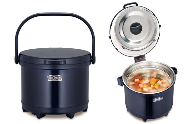 真空保温調理器シャトルシェフ」(オープン価格)。ハンドルと安全ロック付きで、アウトドアで使いやすい作りになっている。お問い合わせ:サーモス