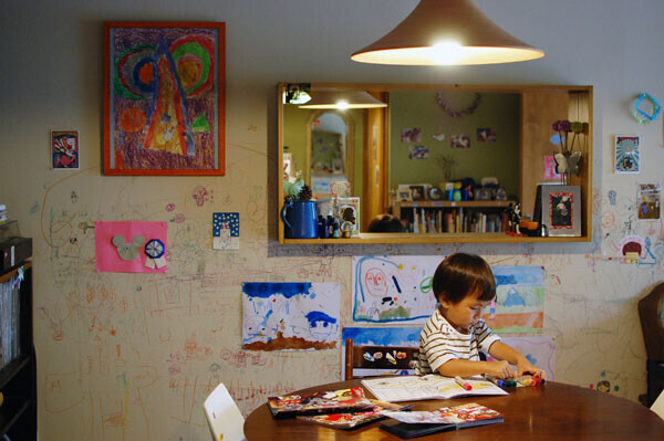 危ない!を減らすために家具は子ども仕様に。やっちゃダメ!も減らしたかったので壁の落書きOKにしたら、すごいことに...。
