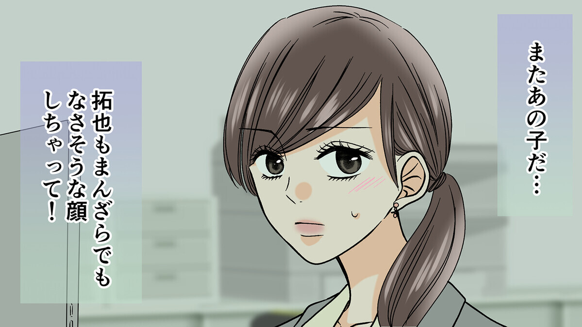 そんな拓也とは別部署のため、職場ではあまり関わることが少なく、新入社員の中には私たちが夫婦だということを知らない人もいます。それもあるのか、実は私にはもうひとつモヤモヤしていることがあったのです…。