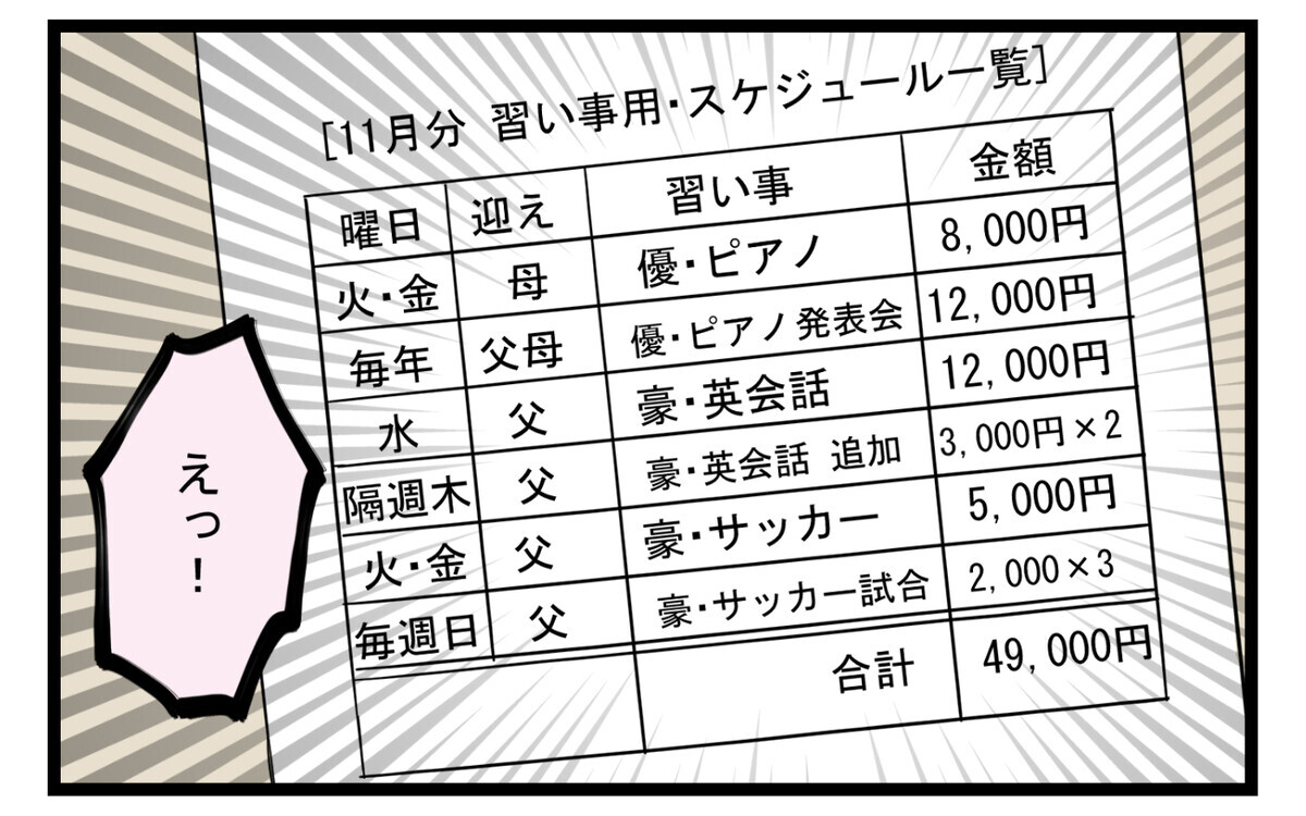 習い事費用、こんなにかかっていた!? /習い事で夫婦喧嘩勃発(4)【夫婦の危機 まんが】