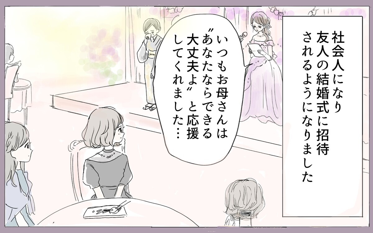 そのころ友人の結婚式に出席する機会があり、そこで友人の親への感謝の手紙や、それを受けて幸せそうな家族を目の当たりにしたのですが…。私はドラマの中ではなく幸せな家族が普通に存在していることに衝撃を受けました。