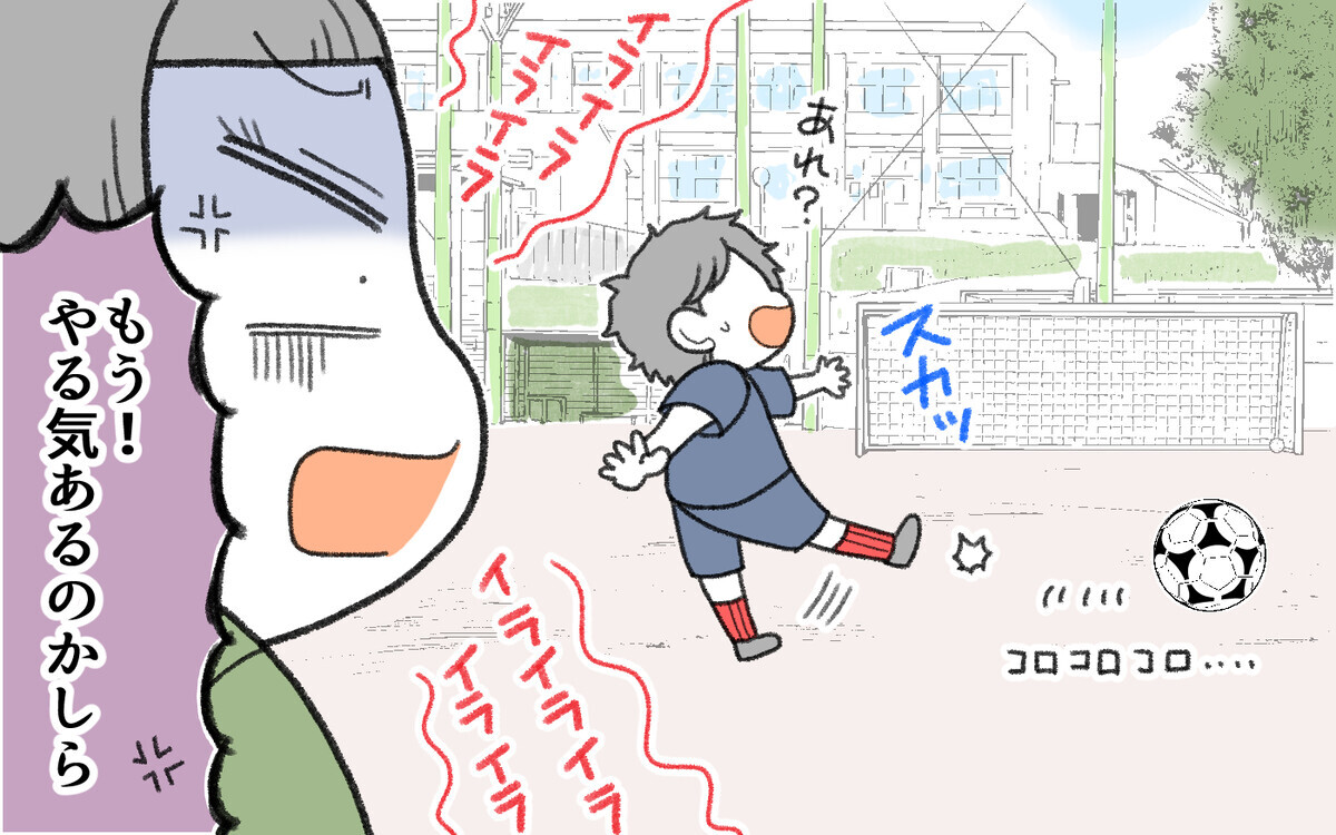 私は自分の息子(けいすけ)がシュート練習でゴールを決めるたびに「ナイスシュート!」と声をかけるのも気まずく、うまく応援できなくなってきました。