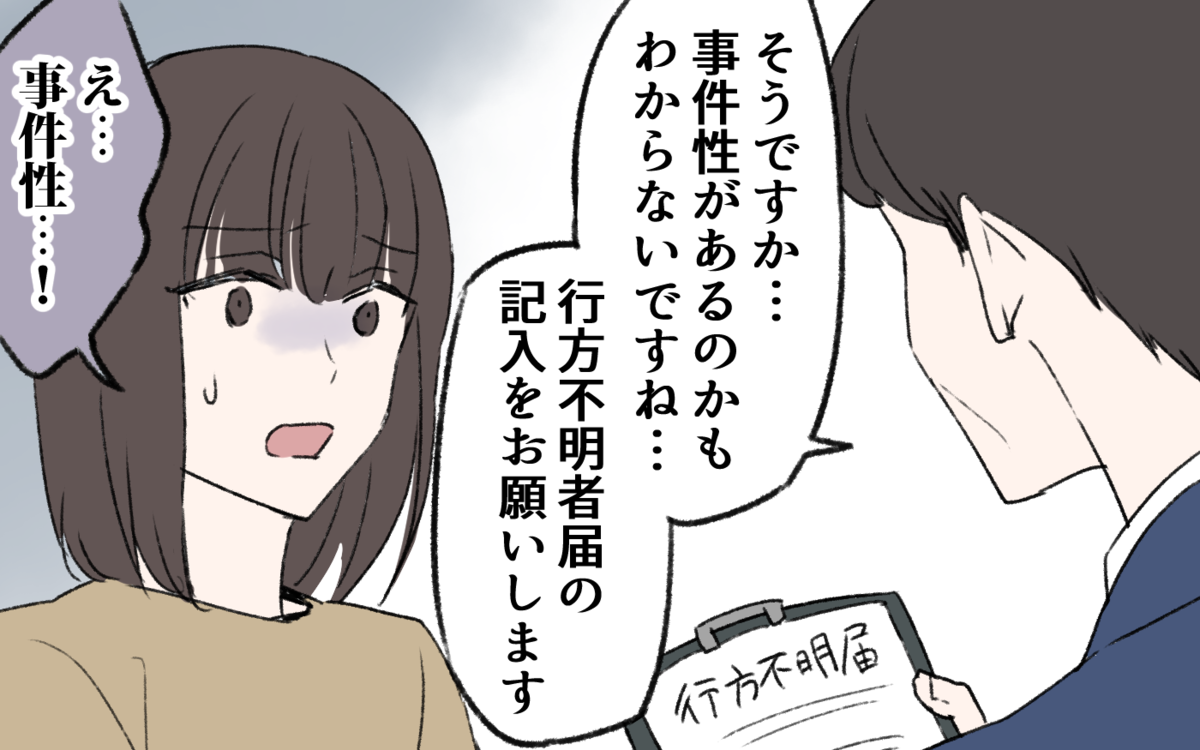 奈津が連絡するも返事はなく、会社から電話があった日から2日間連絡が取れなかったため、奈津は警察に行くことに。