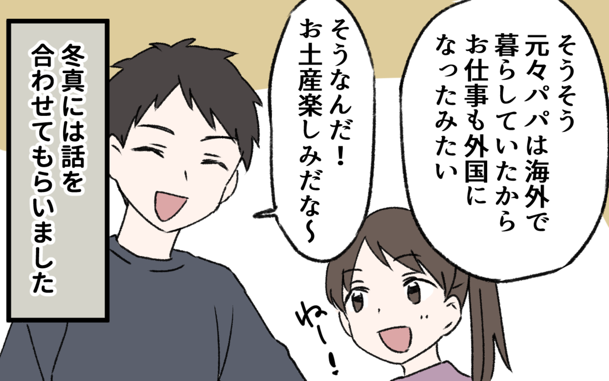 パパは外国に出張に行っていて、いつ帰るかわからない、としました。