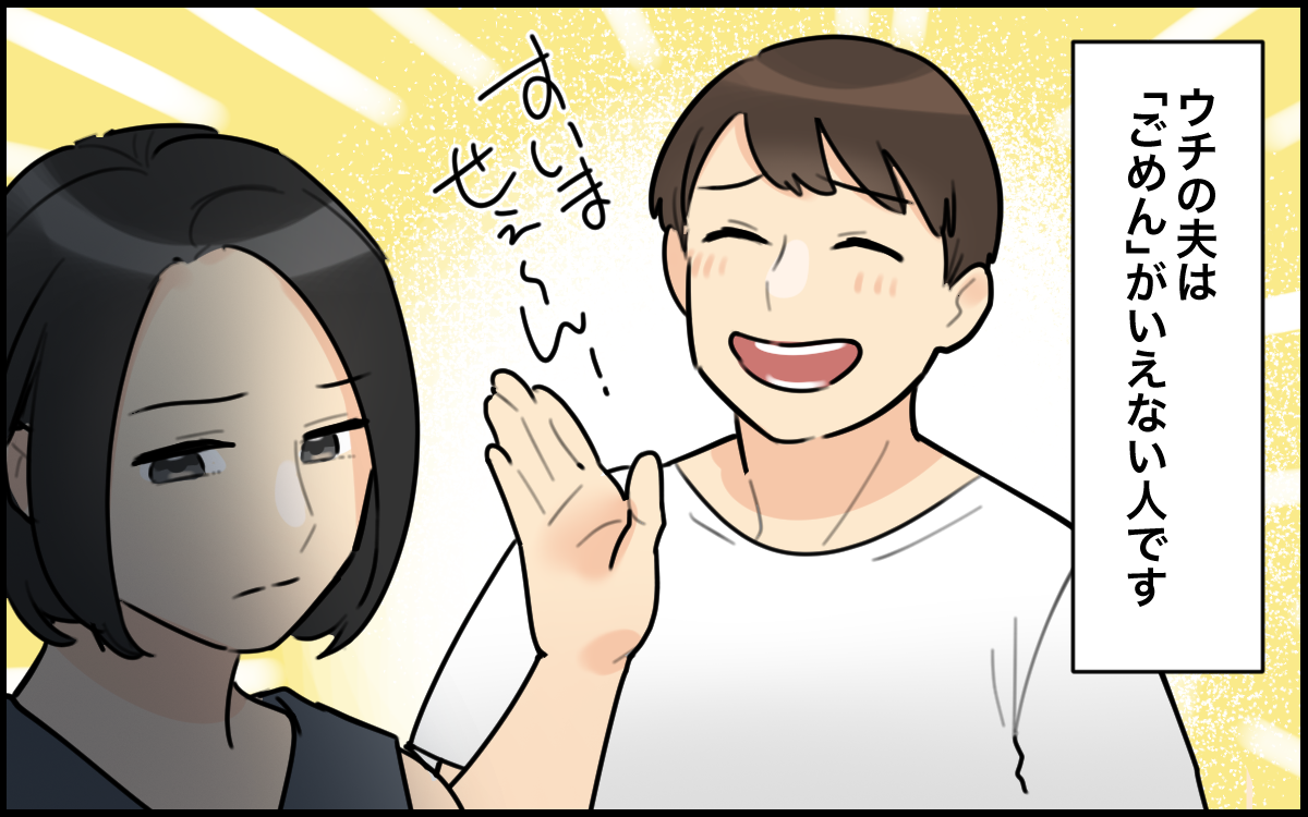>>1話目を見る夫の聡太は、いつも私を持ち上げて褒めてくれるけれど、実際にはほとんど育児も家事もしてくれていないということに気付いた私。そこで聡太に真相を問い詰めてみると…。