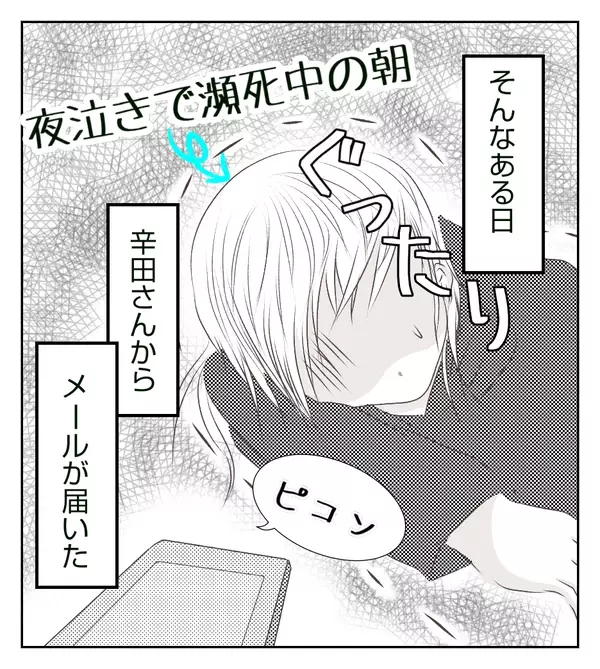 無事に出産を終えたタイミングで辛田からメールが。出産報告をすると辛田からの質問メールが止まらない! ひととおり返信すると、満足したのか、今度は既読スルーされるのでした。