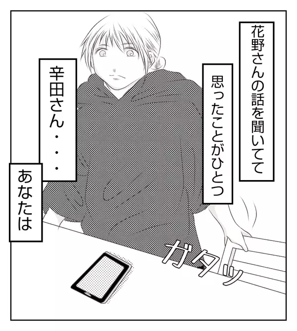 子育てサロンで偶然再会した辛田と花野。あおばの息子と比べて自分の子はちゃんと成長していると安心できると話す辛田に苛立った花野は、迷いながらもあおばにこの話を打ち明けてくれたのでした。
